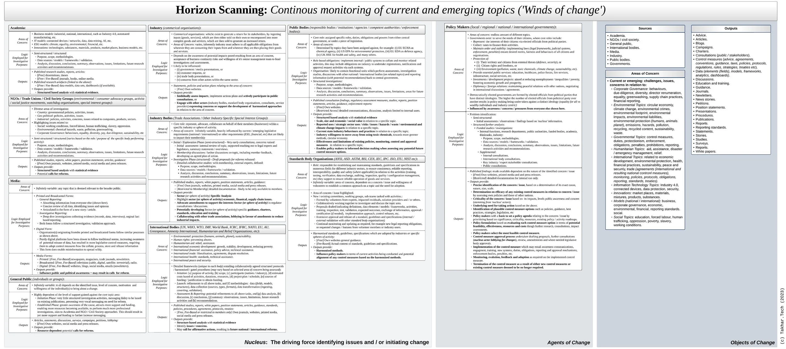 Horizon Scanning: contiually monitor topics from extensive variety of sources.